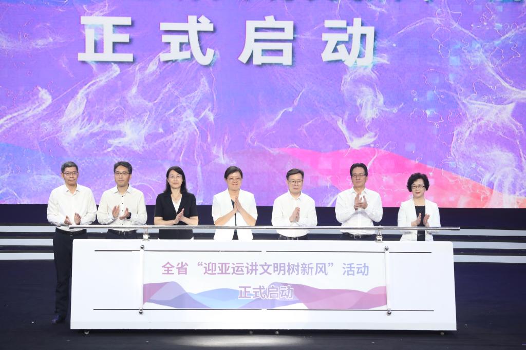 活动现场,举行了全省“迎亚运讲文明树新风”主题活动启动仪式。将通过开展志愿服务和“文明出行”“文明就餐”“文明观赛”“文明待客”等系列活动,进一步提高市民文明素养和社会文明程度,为浙江打造新时代文化高地、共同富裕示范区注入社会正气,以良好的文明风尚迎接杭州2022年亚运会、亚残运会。