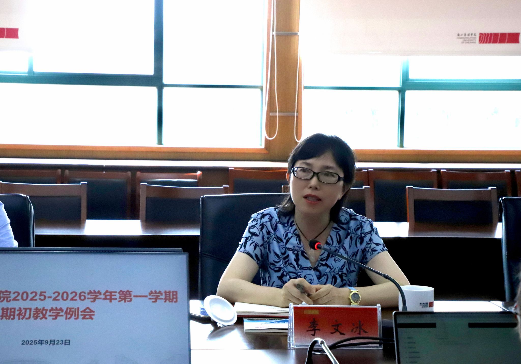 为深入贯彻落实学校第四次党代会精神,打造“卓越传媒人才培养高地”,面向“四个未来”,落实教科人一体化培养、人工智能赋能教育改革创新理念,9月23日上午,我校召开学期初教学例会,部署新学期教育教学高质量发展工作。副校长李文冰出席会议并讲话,相关职能部门负责人和各二级学院(部)院长、副院长等参加,会议由教务处处长主持。