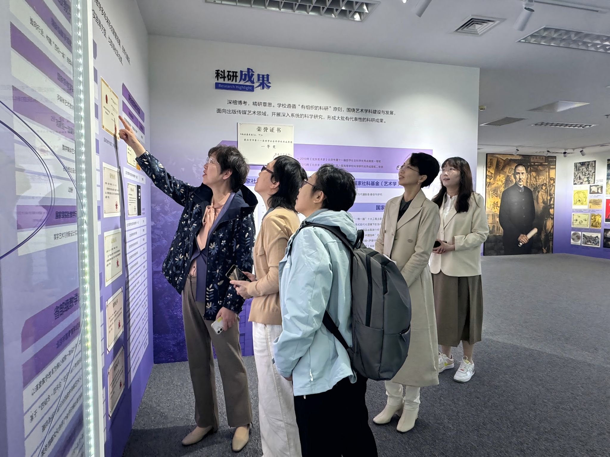 会前,调研组一行参观了北京印刷学院毕昇书坊、出版学科特色展、新媒体学院国家级重点实验室及艺术教育展。