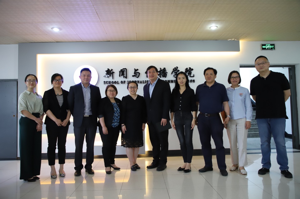 随后,肖进一行走访了新闻与传播学院,双方就具体合作项目进行了深入研讨。新闻与传播学院党委书记崔波、项目牵头人曹月娟、项目团队成员李新祥、刘祥、袁琳等参加了座谈会。