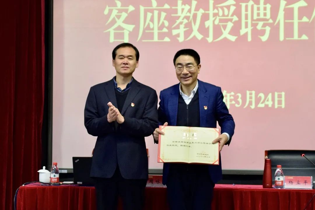 会上,还举行了周咏南客座教授聘任仪式,校党委副书记宣裕方为周咏南颁发了聘书。