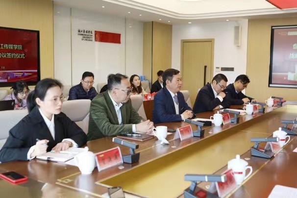 她表示,盘石集团还致力于数字人才培育,培养了互联网营销师、电子竞技师、机器人操作师等新兴紧缺人才,双方在这些领域有着非常广阔的合作前景,希望能够发挥盘石集团的技术优势,赋能浙江传媒学院的智慧校园建设,提升校园品质,打破物理空间的限制,助力浙江传媒学院走向国际,也希望能够发挥浙江传媒学院的学科优势,通过双方互设实训基地的方式,为学生的培养和就业提供更多可能性。