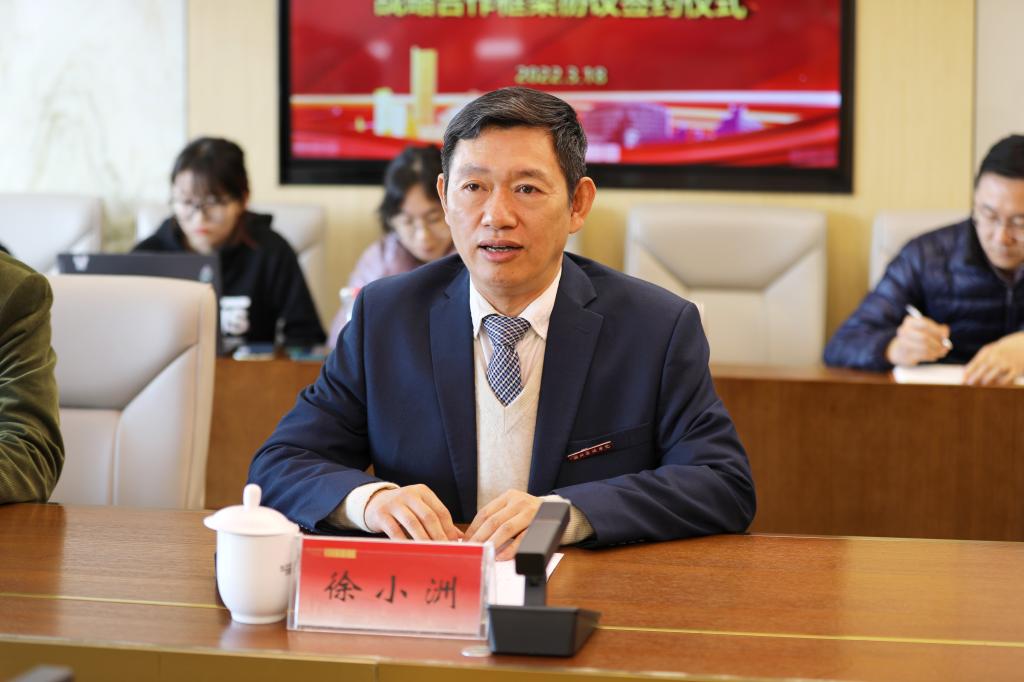 徐小洲指出,学科交叉融合是我校的办学优势和突出特点,这也为双方合作奠定了基础。希望双方能够在人才培养和文化创意方面加强深度合作,发挥双方优势,共同建设实训基地,不断拓展新的合作空间,努力实现合作共赢。