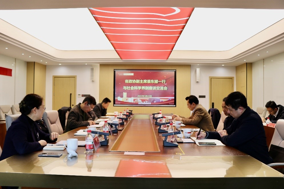 座谈会上,裘东耀充分肯定了我校建设发展情况和浙江省政协社科界别组工作。他表示,近年来社科界别组围绕省委省政府的中心工作,聚焦文化领域的关键问题,提出的很多意见建议切中要害,既体现了社科界别组鲜明的界别特色,又有效助推了相关问题的解决。他强调,社会科学是认识世界、改造世界的重要工具,是推动历史发展和社会进步的重要力量,对党和政府科学决策、民主决策具有重要意义。希望社科界别组进一步加强调查研究,切实了解人民群众精神文化需求,努力为文化浙江建设、高质量发展建设共同富裕示范区作出贡献。