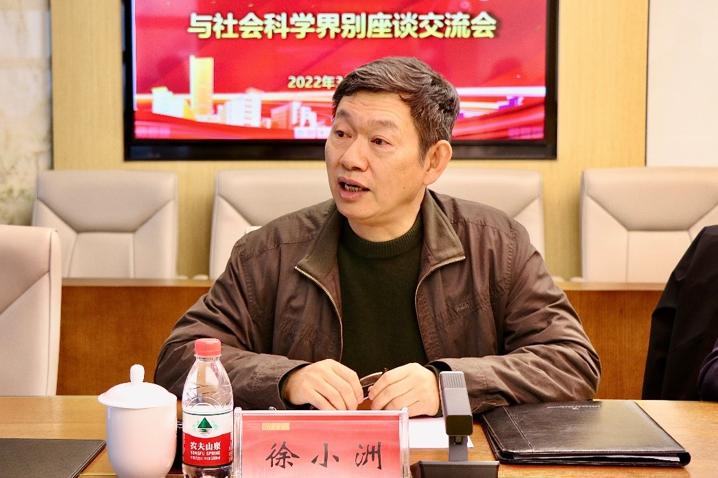徐小洲对裘东耀一行的到来表示欢迎,对文化文史和学习委长期以来指导帮助界别履职表示感谢。他简要介绍了学校近年来各项事业取得的成绩,重点汇报了本届政协社科界别团体提案等履职成效和界别活动开展情况。