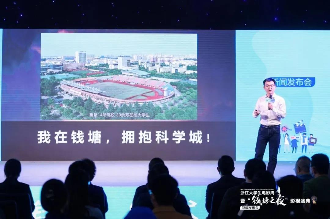 10月18日下午,浙江大学生电影周暨“钱塘之夜”影视盛典新闻发布会在杭州市钱塘区国际创博中心举行。