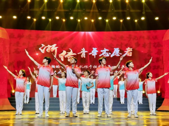 校最美志愿者代表、亚运会预录用志愿者代表和校朗诵团联袂带来的诗朗诵《青年有“志”逐浪前行》,既回顾了学校志愿服务的精彩瞬间,又深情宣告了要以青春之志与浙江共筑亚运荣光的庄严承诺。“杭州亚运会作为在学校门口举办的一场国际盛会,青年生逢其时何其有幸!我们想通过诗歌抒发我们的激情,更表达我们服务亚运的坚强决心。”亚运会预录用志愿者师启然演出后动情说道。