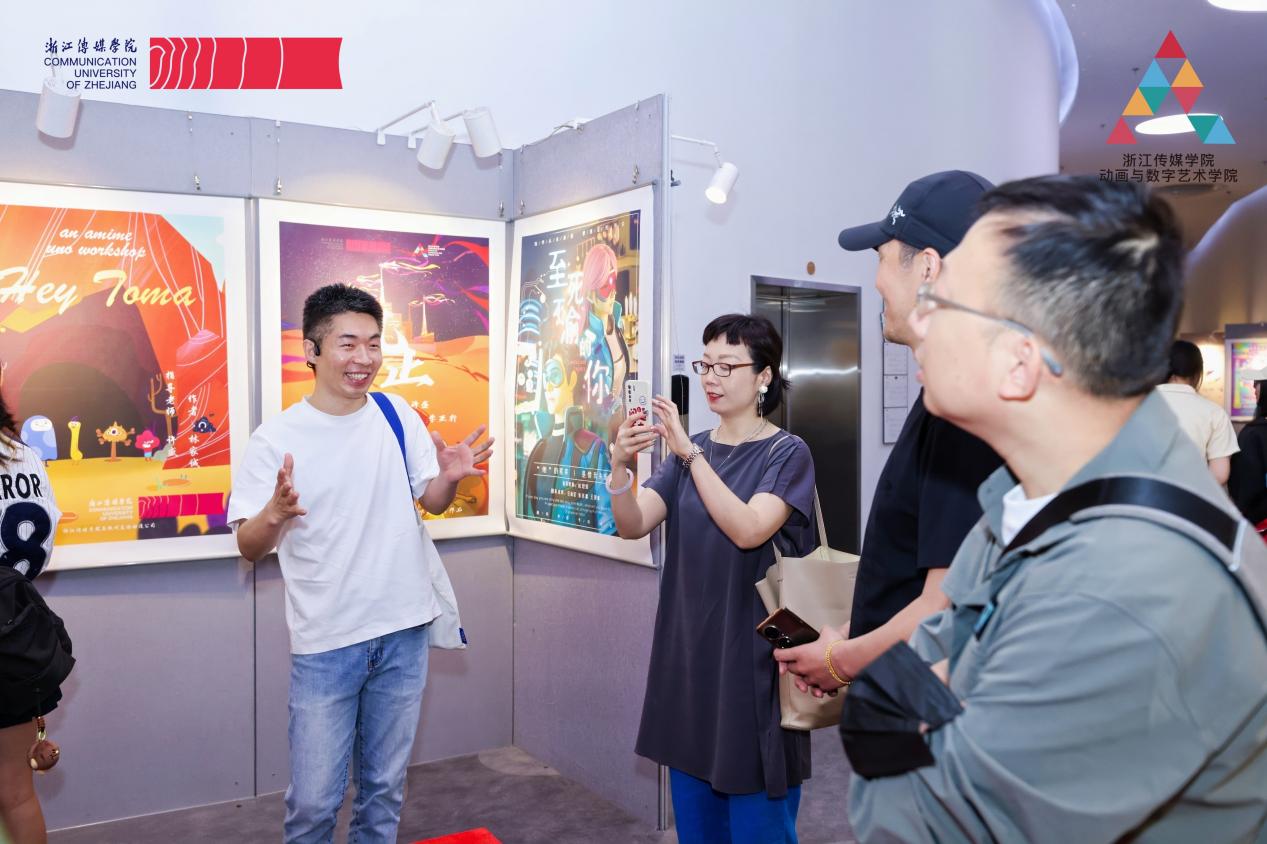 浙江传媒学院党委委员、组织部部长张雷教授,浙江省漫画家协会主席陶小明,浙江省动漫产业学会副会长兼秘书长郭城,浙江省漫画家协会副主席兼秘书长邹强,中国电影评论学会动漫游戏专业委员会主任、浙江大学影视与动漫游戏研究中心主任、博导盘剑教授,中国美术学院动画与游戏学院博导于瑾教授,浙江师范大学“双龙学者”特聘教授王雷,钱塘区委宣传部部务会议成员、区文联主席谭雪华,钱塘区文联党组成员、副主席沈小玲、钱塘区美协主席薛承峰,浙江省动漫产业学会副会长、浙江中南卡通股份有限公司总经理沈玉良,中国动漫博物馆副馆长朱虹,浙江传媒学院教务处处长黄寒冰教授,浙江传媒学院动画与数字艺术学院党委书记、副院长陈凌广教授、浙江传媒学院学工部副部长谢伟旋及浙江省各兄弟院校领导和负责人、在杭重要动漫企业嘉宾、学校师生等300多人参加本次作品展。