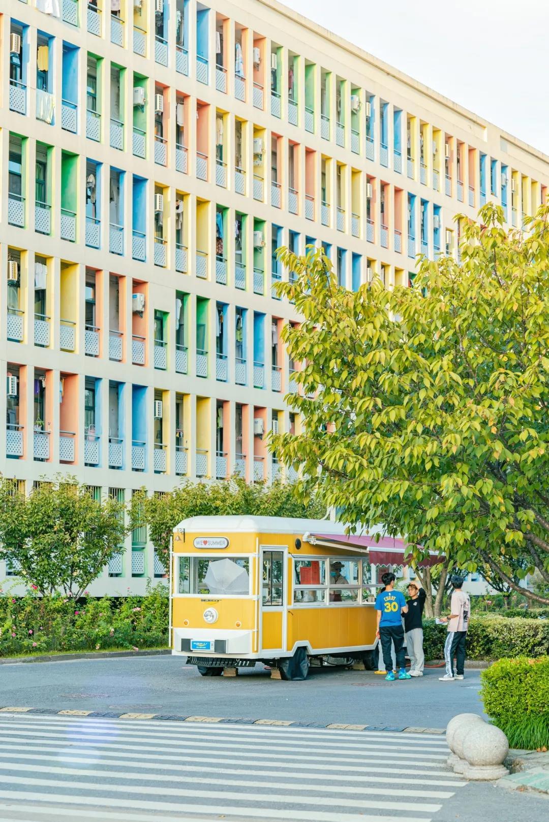 红橙黄绿,彩虹校舍斑斓色彩同青春交织。