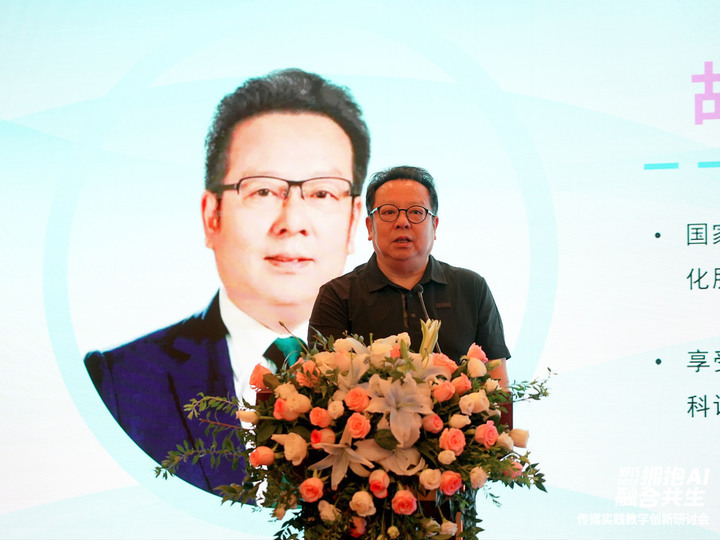 浙江传媒学院党委副书记、副校长(主持行政工作)韦路教授作了题为《AI时代的传媒实践教学创新》的报告,他的报告重点围绕“培养什么传媒专业人才”“如何培养传媒专业人才”的问题展开,指出了传媒类专业实践教学创新的重要性,提出要从科艺融合、产教融合,虚实结合三个方面,培养具有数字思维、智能素养、创意设计能力,善用工具,富有创造性和主体性的人。
