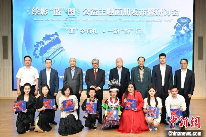 嘉宾在《绘影“蓝”图》公益主题画册发布会现场合影。 田雨昊摄 原国务院扶贫办主任、全国乡村文化产业创新联盟主席刘坚表示,画册图文并茂、形象生动,以画册的形式宣传和推广贵州丹寨蓝莓产业和非遗文化以及乡村发展成果,这对推进乡村产业振兴和文化振兴是一种非常好的形式。
