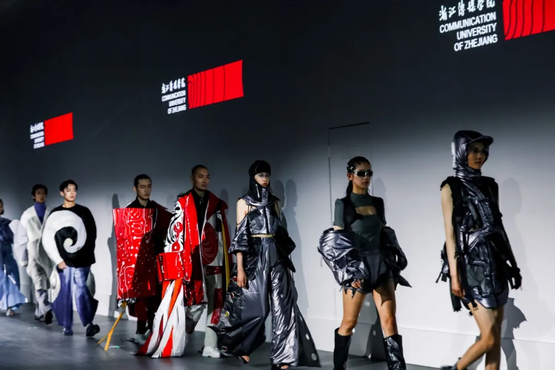 在简短的开幕式后,有关领导与嘉宾观摩浙江传媒学院“出壳 观新”服饰文化大秀。