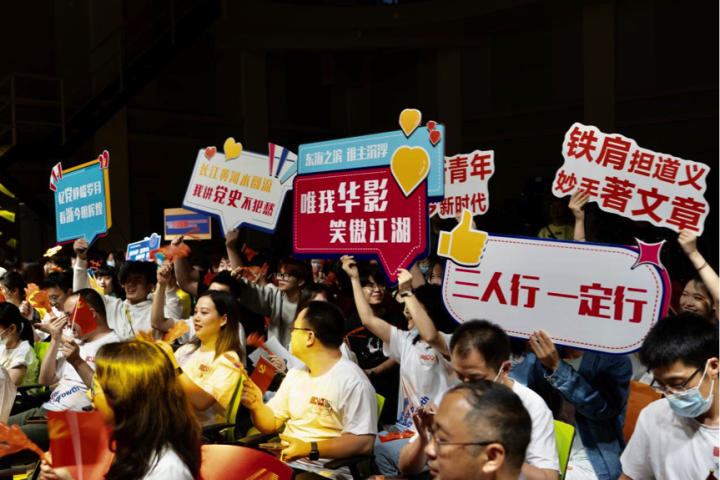 新颖的活动形式让同学们受益匪浅,现场不时响起热烈的掌声和喝彩声。电视艺术学院19电编3班潘裕林同学表示:“我觉得这样的党史学习教育活动很接地气,通过和老师们一起登台完成节目,让我们在演中学、学中悟,更好地理解建党百年的光辉历程,也更加坚定我们新时代青年贡献青春力量的决心。”