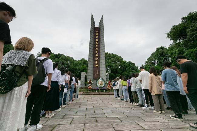 本次活动还添加了对红色革命基地的实地考察、参观,以加强学员们的学习热情,激发青年记者的爱国热情:在平阳县凤卧镇省一大冠尖会址,学员们参观了纪念馆和旧址,学习了革命先辈在危急时刻“敢为先、善创新”的精神;在中国工农红军挺进师纪念园,学员们向纪念碑敬献花圈,表达了对革命先辈的缅怀和敬意。“很荣幸能够亲手为这些以前只在历史书中看到过的革命先辈献上花篮,希望以后能把先辈们的革命精神传承下去。”参加献花篮仪式的19飘屏班陈欣欣同学表示,通过参加献花活动,更增强了自己的责任与担当意识,强化了未来奋进的动力。