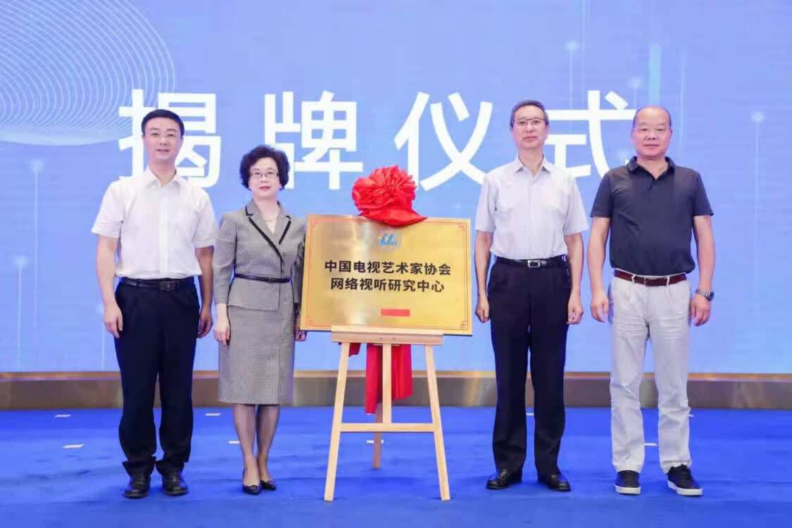 中国文联副主席、中国视协主席胡占凡,中国视协分党组成员、副秘书长、一级巡视员范宗钗,浙江传媒学院党委书记杨立平,杭州市临平区委宣传部长沈威共同为中国电视艺术家协会网络视听研究中心揭牌。