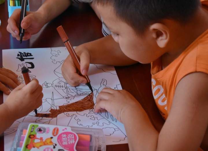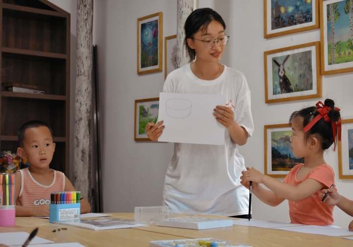 移动美术课堂暑期实践团队在湫山乡儿童之家展开了第一堂美术课。