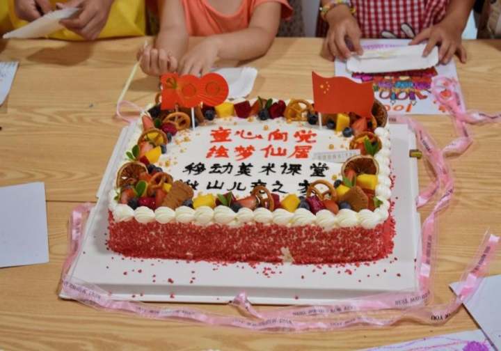 童心绘蛋糕,随后,孩子们拿起手中画笔,发挥自己的想象,为亲爱的党制作创意生日蛋糕,送上真挚的祝福。