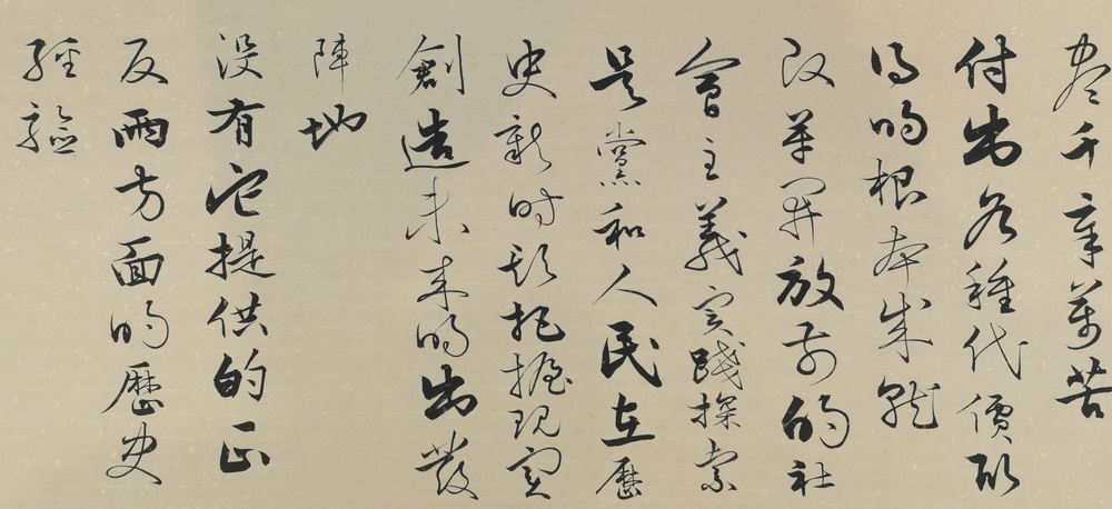 同样面临第一幅长卷中相同的单字很多等问题,最多的一个“的”字多达467次,加上第一幅长卷,这个“的”字写了730次,而且尽管做到不一样。在书写上的字体和断句上延用了第一幅长卷的做法。