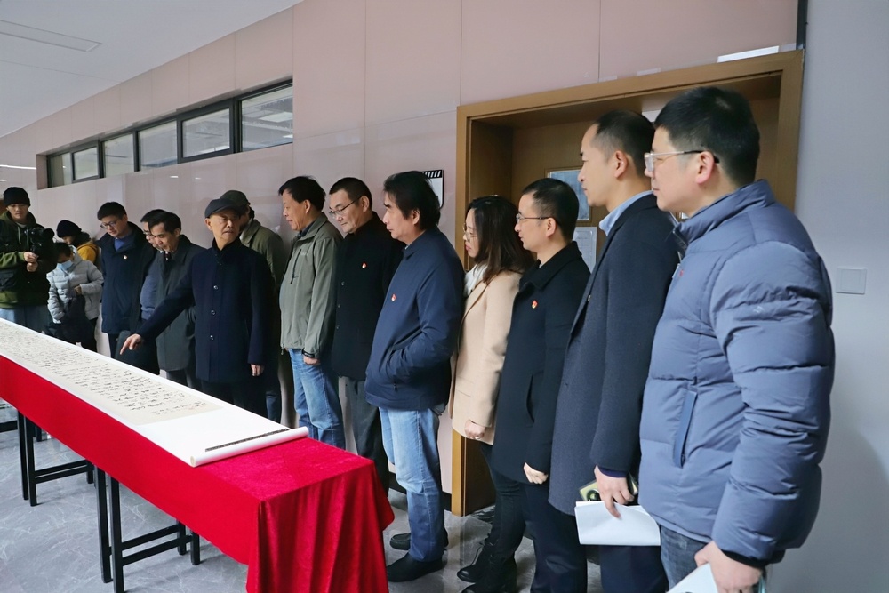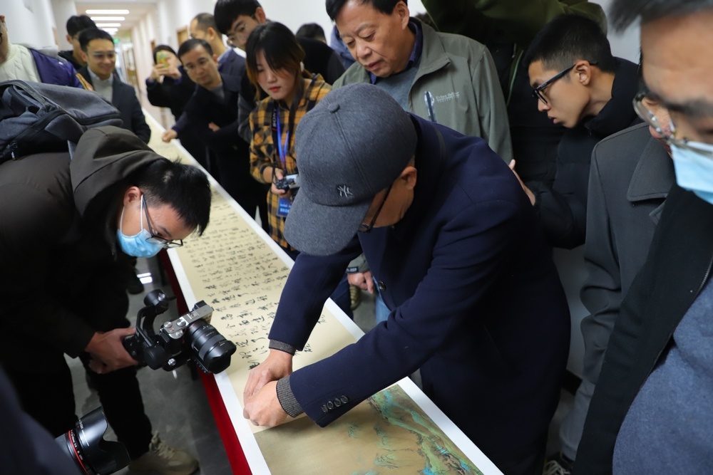 中国作家协会原副主席、浙江省作家协会名誉主席、中国电影文学学会副会长黄亚洲,浙江省杂文学会会长、中国作协作家书画院浙江分院执行院长桑士达,西泠印社“诗书画印”四绝名家袁道厚,浙江省传统文化促进会副会长陈凌广,嘉兴市青年书法家协会主席沈惠强等莅临展览,大家对两幅长卷赞叹不已。