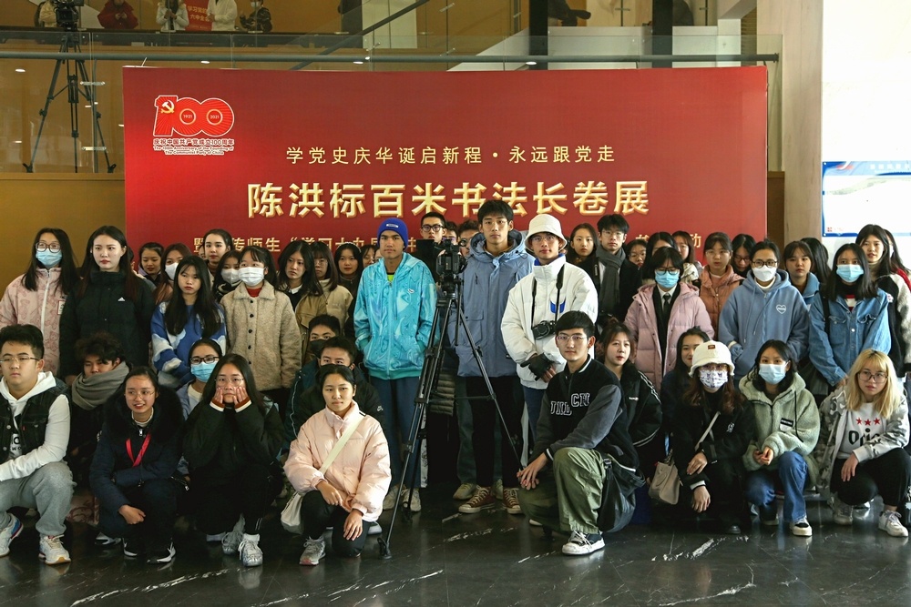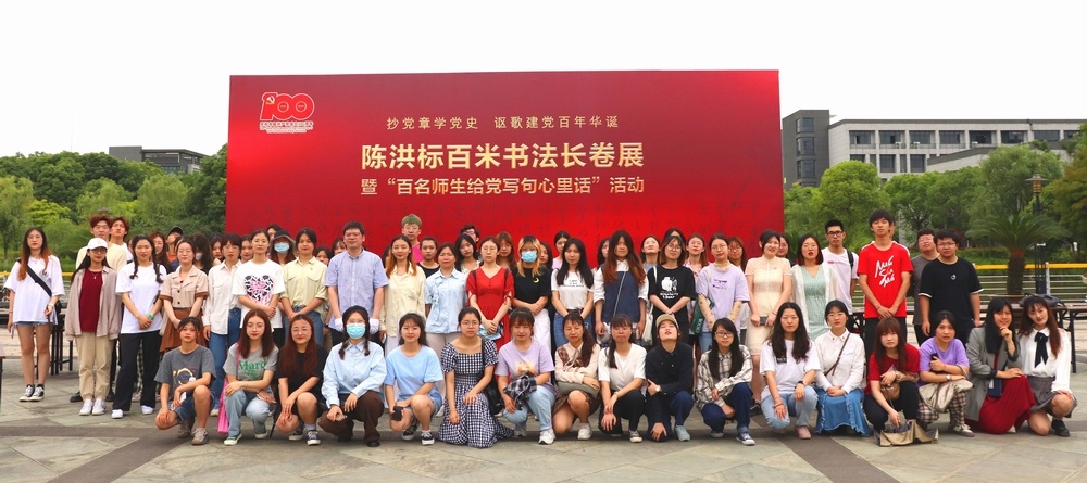 在浙传,书法艺术具有深厚的学养积淀和广泛的群众基础,陈洪标老师作为一名教育工作者和书法爱好者,在党史学习教育过程中潜心创作、认真书写,精心创作了“庆祝建党百年华诞”和“永远跟党走”的两幅百米长卷,这是我校师生开展党史学习教育的生动案例,是艺术+思想政治教育的鲜活教材,也为学校深入学习宣传党的十九届六中全会精神起到了很好的示范作用。