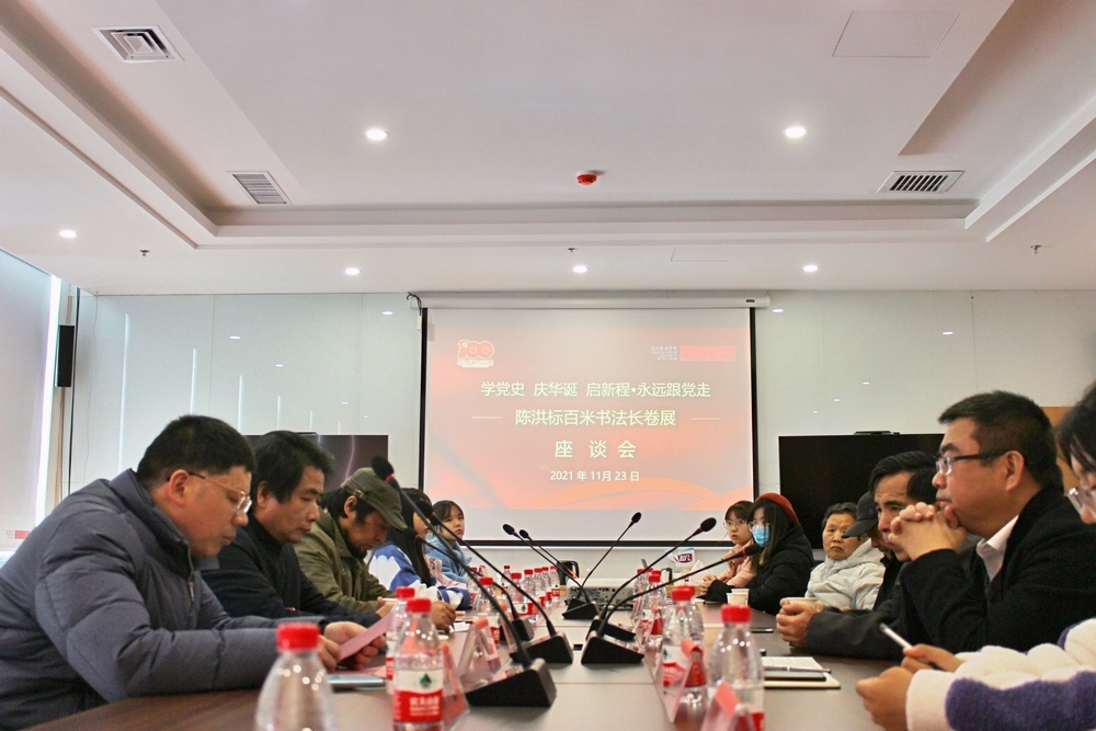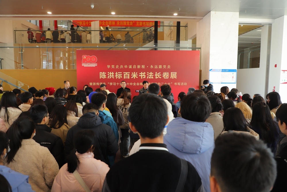 11月23日,浙江传媒学院在桐乡乌镇校区,举办“学党史庆华诞启新程 永远跟党走”陈洪标百米书法长卷展暨浙传师生“学习十九届六中全会精神”主题书写活动,并举行了座谈会。