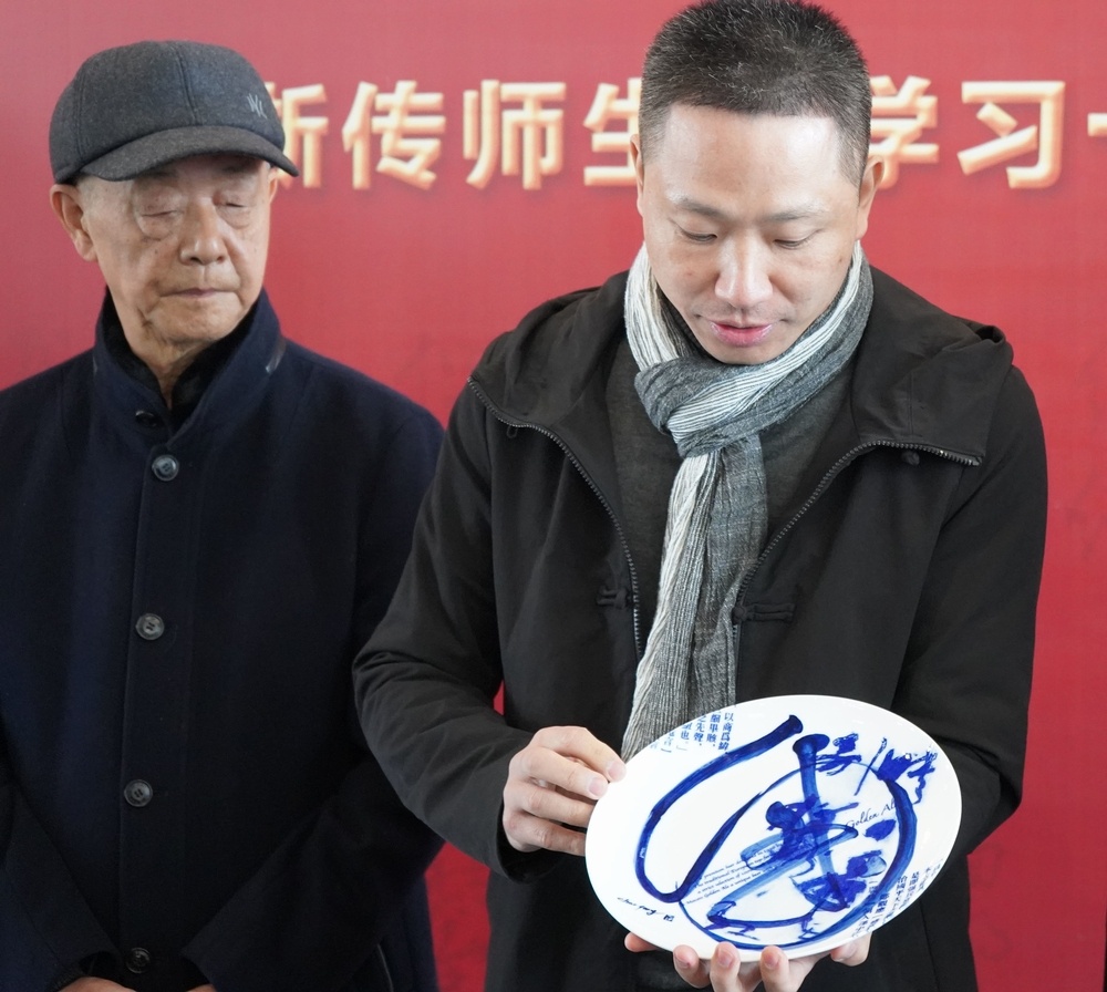 长卷展开幕式别开新面,展示了浙江传媒学院教授、桐乡设计学院副院长杨超,与陈洪标合作的书法青花瓷赏盘。