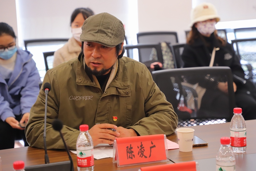 座谈会上,陈凌广在主持和发言。王志岳 摄。