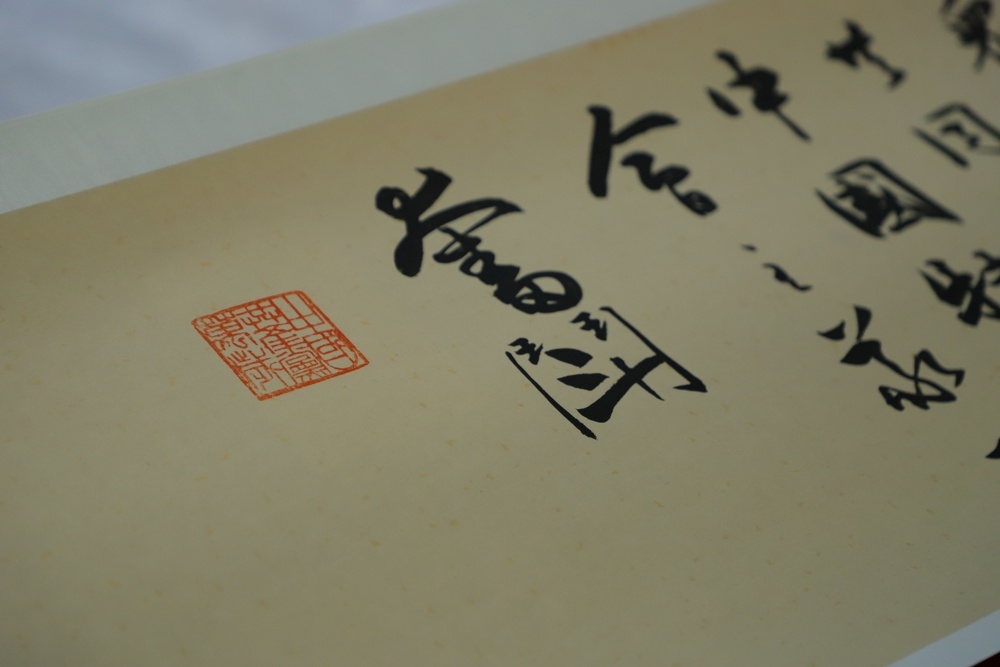 ↑袁道厚先生给第一幅百米长卷盖的章“中国共产党万岁”。