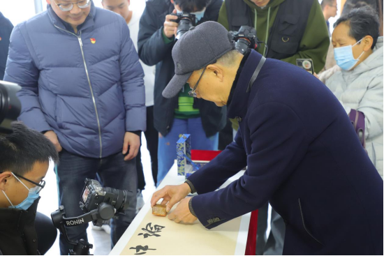 年近八旬的西泠印社“诗书画印”四绝名家袁道厚先生为两幅百米长卷篆刻了“中国共产党百年华诞”和“中国共产党万岁”两方印章,并在现场亲自钤印,为长卷“画龙点睛”。