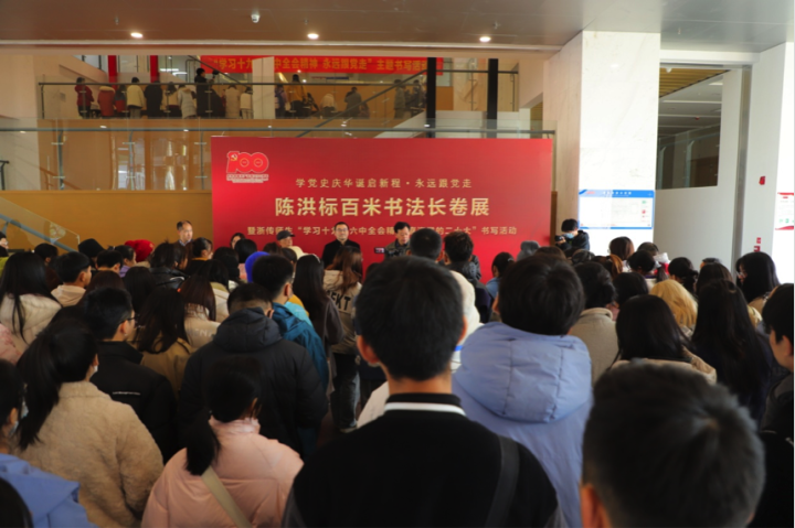 11月23日,浙江传媒学院桐乡乌镇校区,举行“学党史庆华诞启新程 永远跟党走”陈洪标百米书法长卷展暨师生“学习十九届六中全会精神”主题书写活动。