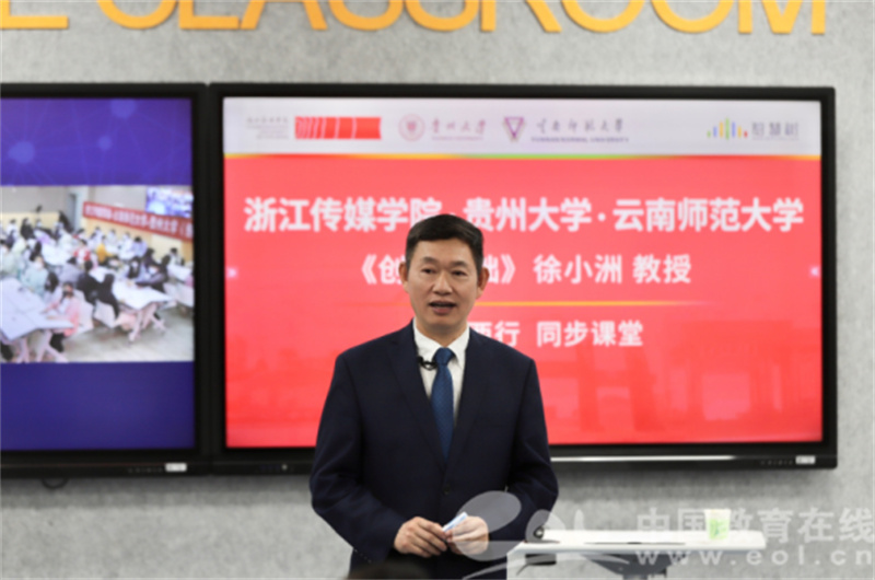 中国教育在线浙江站讯 (记者 陈显婷 通讯员 刘燕 唐佳丽)“创业者的金钥匙在哪里?”“在激情!在思维!在行动!”4月20日晚,一场链接杭州、贵阳、昆明三地隔空同屏学习的画面同时出现在浙江传媒学院、贵州大学和云南师范大学的校园里。教育部“长江学者奖励计划”特聘教授,浙江传媒学院校长徐小洲为三校近8000名学生献上了一堂以“道与术:创业、创业社会与创业者”为主题的“跨校远程直播”同步《创业基础》课。
