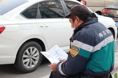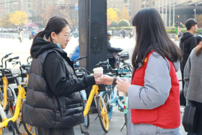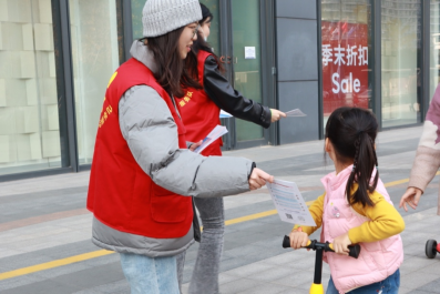 接下来的两个小时,志愿者们为街边正在送外卖的小哥和路边正准备骑共享单车的市民们送上“骑行安全”宣传单,提醒老人市民注意防诈骗,向路过的市民宣传日常生活平安注意事项,市民们纷纷接过宣传手册并向志愿者们道谢。