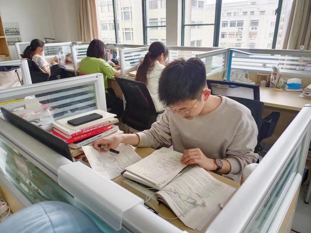 从图书馆到学院考研自习室,他说很庆幸自己遇到了志同道合、并肩作战的朋友