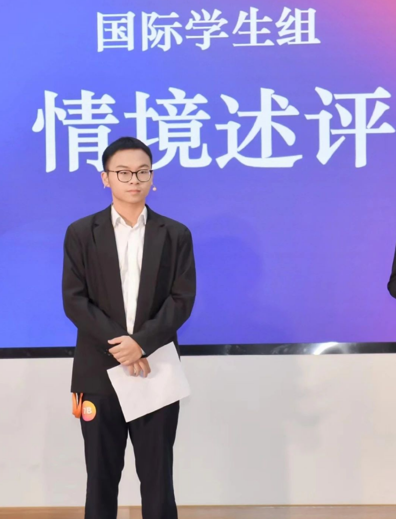 叶旆帷:这次跨文化大赛对我而言,堪称终生难忘的经历。能够在首次参赛时便荣获全国冠军,实在是莫大的荣幸与荣耀。特别要感谢三位指导老师,他们不仅无私奉献、耐心指导,还始终陪伴在我们身边,悉心帮助我们解决一个又一个难题。更要感激两位摄像老师,在技术层面给予我们的专业支持,没有他们我们也无法走到今天。最重要的,当然是我的队友们。正是大家的共同努力,彼此间的信任与支持,才让我们最终在全国总决赛中脱颖而出,摘得桂冠。这份荣誉属于每一个为之奋斗的人。此次跨文化大赛的经历,不仅让我收获了冠军的荣耀,更让我深刻感受到了一路上来自他人的温暖支持与鼓励。我感恩所有为此付出的每一个人,也为自己能成为这个卓越团队的一员而无比自豪。