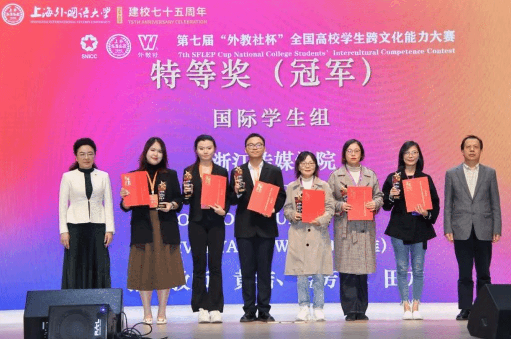 近日,第七届“外教社杯”全国高校学生跨文化能力大赛全国总决赛落下帷幕,我校双语播音与主持艺术(双语播音)专业的留学生李心宁、卢方畯、叶旆帷斩获国际学生组特等奖,荣获冠军。这是浙江赛区代表团在该赛事获得的历史最好成绩。此外,李心宁同学还在本届比赛中荣获最佳思辨奖。