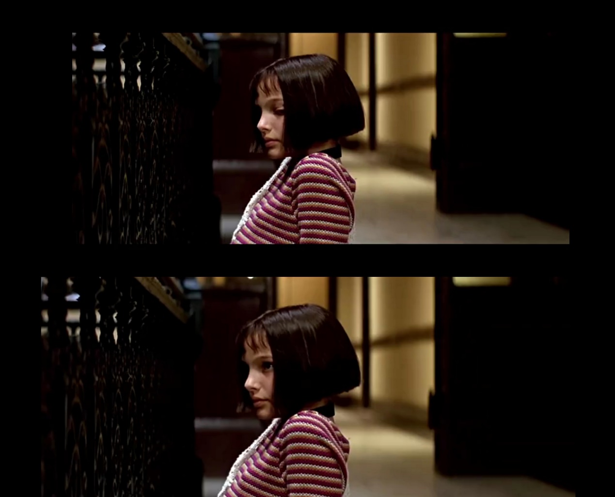 就是这样两个人,当玛婷达强装镇定地走过惨遭灭门的家,背对凶手哭着按响了里昂家的门铃,他们的生活就此交缠在了一起。里昂打开了门,光骤然洒在玛婷达的脸上。