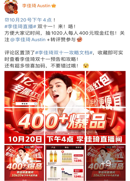 在“双十一”的购物热潮中,主播们自然不会轻易放过这个狂潮,其中最著名的主播当属李佳琦与薇娅。“我也不想买啊,可是他叫我美眉诶”。看似戏谑的背后,其实是巨大的商机。截止10月22日,两人直播间观看人数双双破两亿,据淘宝直播数据统计,薇娅直播间成交量达82亿,李佳琦直播间突破百亿。除此之外,明星进行直播带货的现象日益增多。前有“嘎子听叔一句劝”,后有“嘎子把握不住的,叔来把握”。27日,赵丽颖作客李佳琦直播间,两人进行“梦幻联动”,更是吸引了2600万人在线观看,赵丽颖代言的所有产品瞬间秒没。