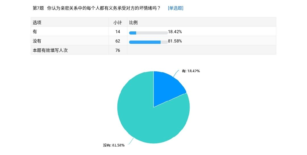 本次调查结果显示,81.58%的人认为亲密关系中的每个人并没