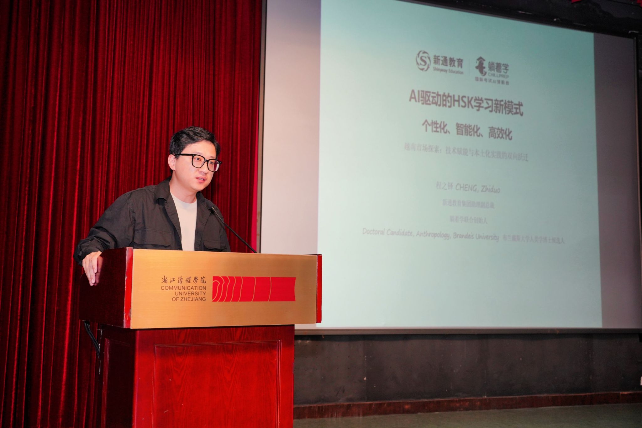 下午的专家报告由浙江传媒学院文学院赵思运教授主持。丁安琪以新手教师为对象,基于案例探讨AI对教师教学设计能力的影响,提出三阶跃迁路径和人机协同模型;曾晨刚聚焦全球数字鸿沟与国际中文教育数字化转型。业界专家朱敏指出中国数字化优势与网络基建问题,强调企业研发AI赋能教学的同时需明确使用界限;程之铎分享越南HSK智慧化转型实践。北京体育大学刘路则研究国际中文职前教师的AI-TPACK建构,提出发展策略。