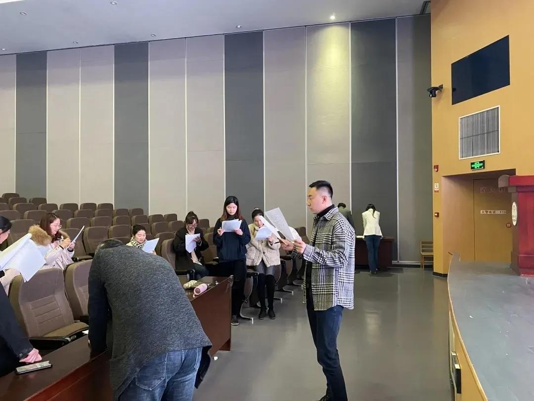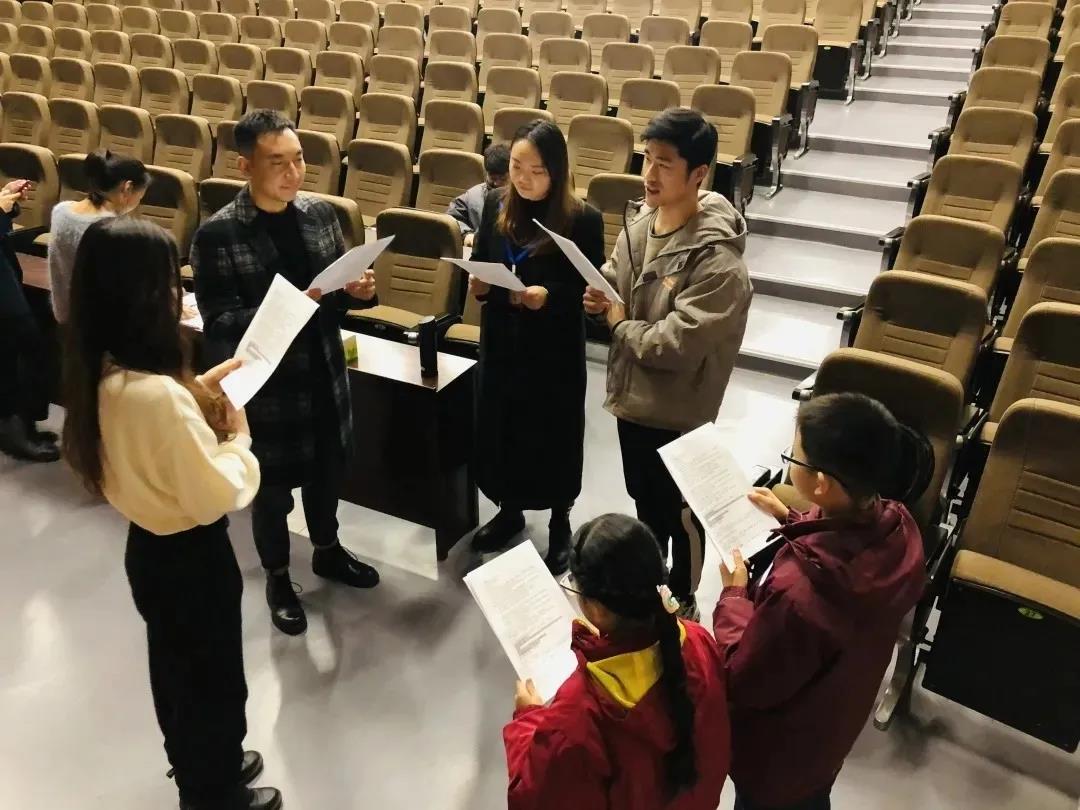 活动前期,我院党员教师李斌为文思小学党员教师进行朗诵和主持指导。李老师教授了朗诵气息、舞台上的非语言表现等技巧,为党员教师们指明了努力的方向。他亲自示范朗诵的细节,要求朗诵者在声、情、气、韵上要有很好的控制和拿捏,对重音的推敲、节奏、语势的设计都要花一些心思。随后,他为参加活动的党员教师们声情并茂地演绎了主持词并进行了现场答疑。