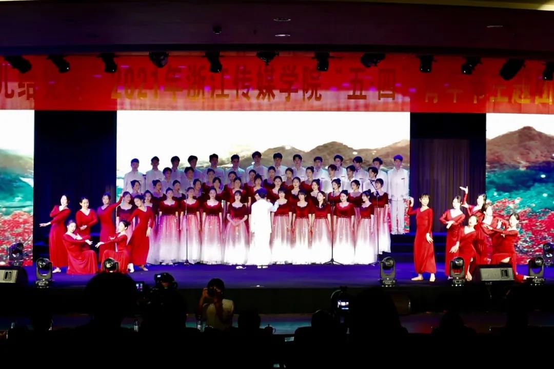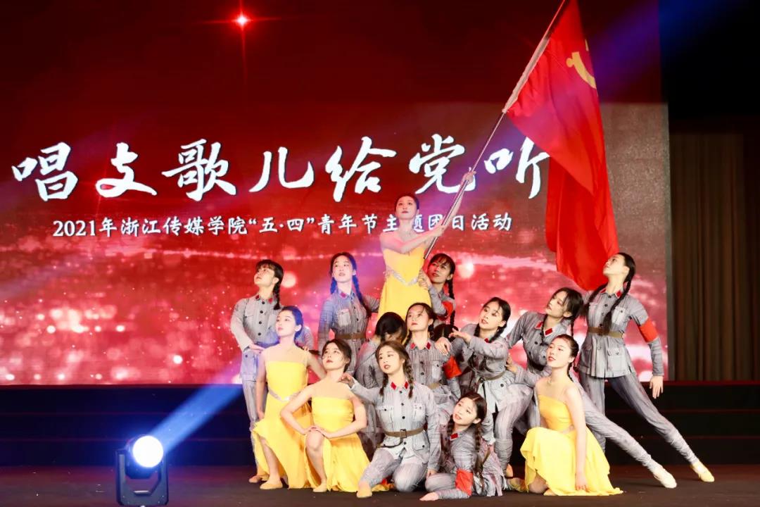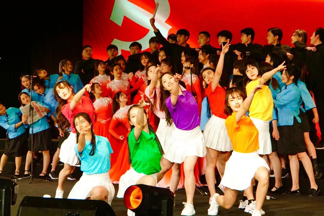 饱满的音色、动情的歌声使现场观众沉浸其中,舞美和背景与歌声相辅相成,充分展现了浙传学子的实力和激情。让我们立天下之志向,争做青春途中的赶路人。中国前程正似锦,青春奋斗正当时!由各二级学院代表带来《没有共产党就没有新中国》,同学们边挥舞着手中的国旗边放声歌唱,满眼红旗飘动在舞台中央,台下观众齐唱互动,现场氛围热烈。伴随着歌声,本次主题团日活动圆满落下帷幕。
