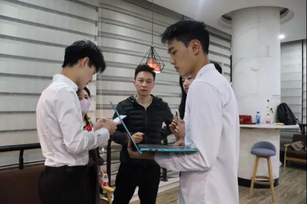 2021年初,《百年追寻》开始筹划,历时三个多月,反复修改;3月18日、19日遴选演员,百里挑一;3月30日,开排仪式正式启动,斗志昂扬;4月1日开始排练,扬帆起航;4月8日,主创团队考察演出场地,收获满满……4月25日,《百年追寻》大型音诗画舞台剧联排首次在艺术楼小剧场登台亮相。