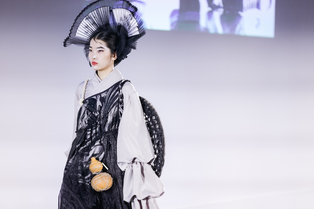 我校“出壳观新”服饰文化大秀作为“艺稻·大美”青年艺术创想周的重要活动之一,集造型艺术、舞台艺术和影视艺术于一体,探索当代艺术精神数字化呈现,为大家上演了一场流光溢彩的T台展示秀。