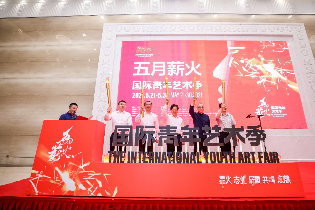 葛学斌、许江、张维仁、楼洪志、冯晶点亮火炬,并将其交给各艺术院校的青年艺术家代表,“五月薪火”国际青年艺术季由此拉开帷幕。