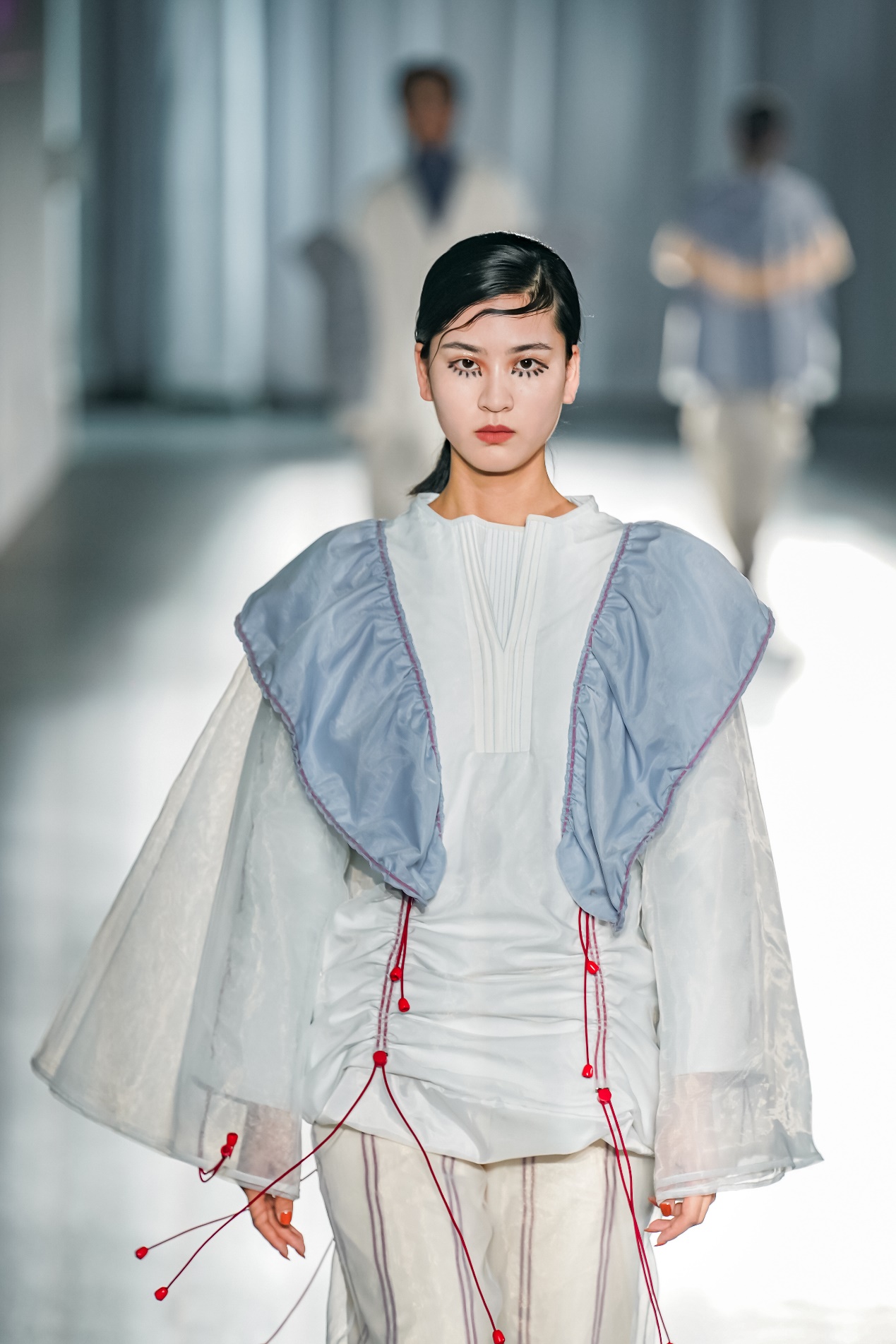 本次“出壳观新”服饰文化大秀分2个篇章进行,共涉及22个系列、88套服装。“出壳”将影像和艺术观念结合,探讨“第三视角”中的艺术“审视”,并采取空间的实验性表达,打破传统秀场T台形态,呈现多层次的流动空间。