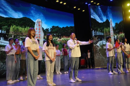 在随后举行的文艺展演上,我院青年教师李斌带领学生为大家倾情演绎了情景剧《绿水青山就是金山银山》,精彩的表演赢得现场阵阵掌声。
