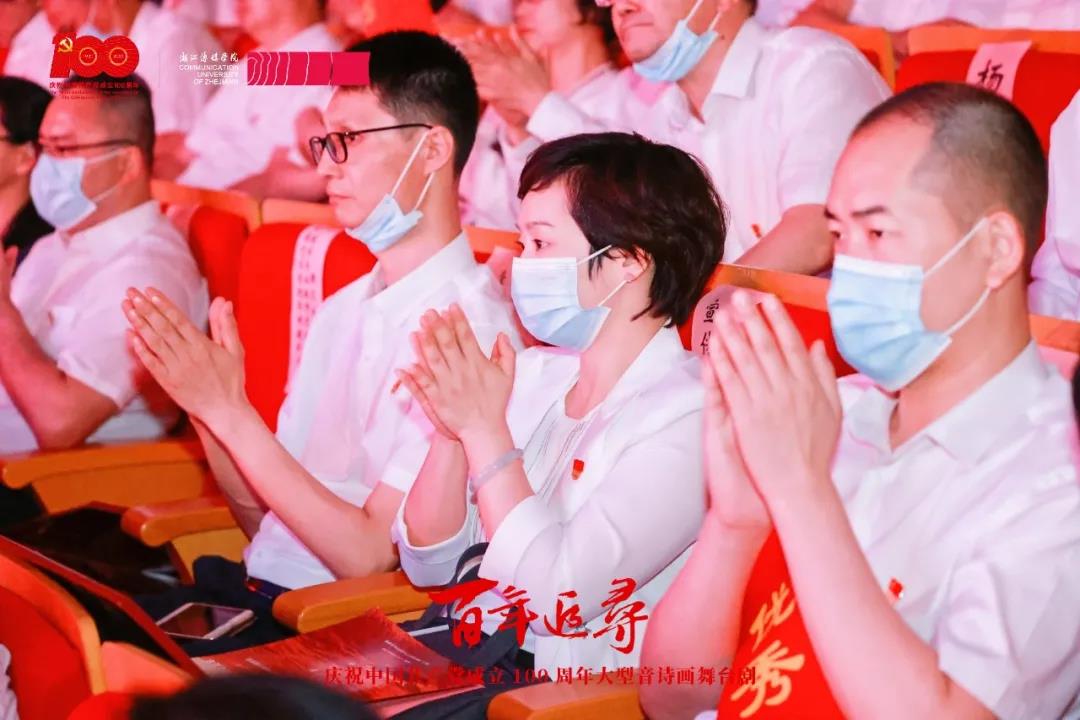 雄关漫道真如铁,而今迈步从头越。今天,我们比历史上任何时期都更接近、更有信心和能力实现中华民族伟大复兴的目标。让我们更加紧密地团结在以习近平同志为核心的党中央周围,深入学习贯彻习近平新时代中国特色社会主义思想,大力弘扬红船精神,坚决守好红色根脉,忠实践行“八八战略”、奋力打造“重要窗口”,加快建设国内一流、国际知名高水平传媒大学,为争创社会主义现代化先行省和共同富裕示范区建设不断贡献浙传力量,以实际行动和优异成绩庆祝建党100周年!