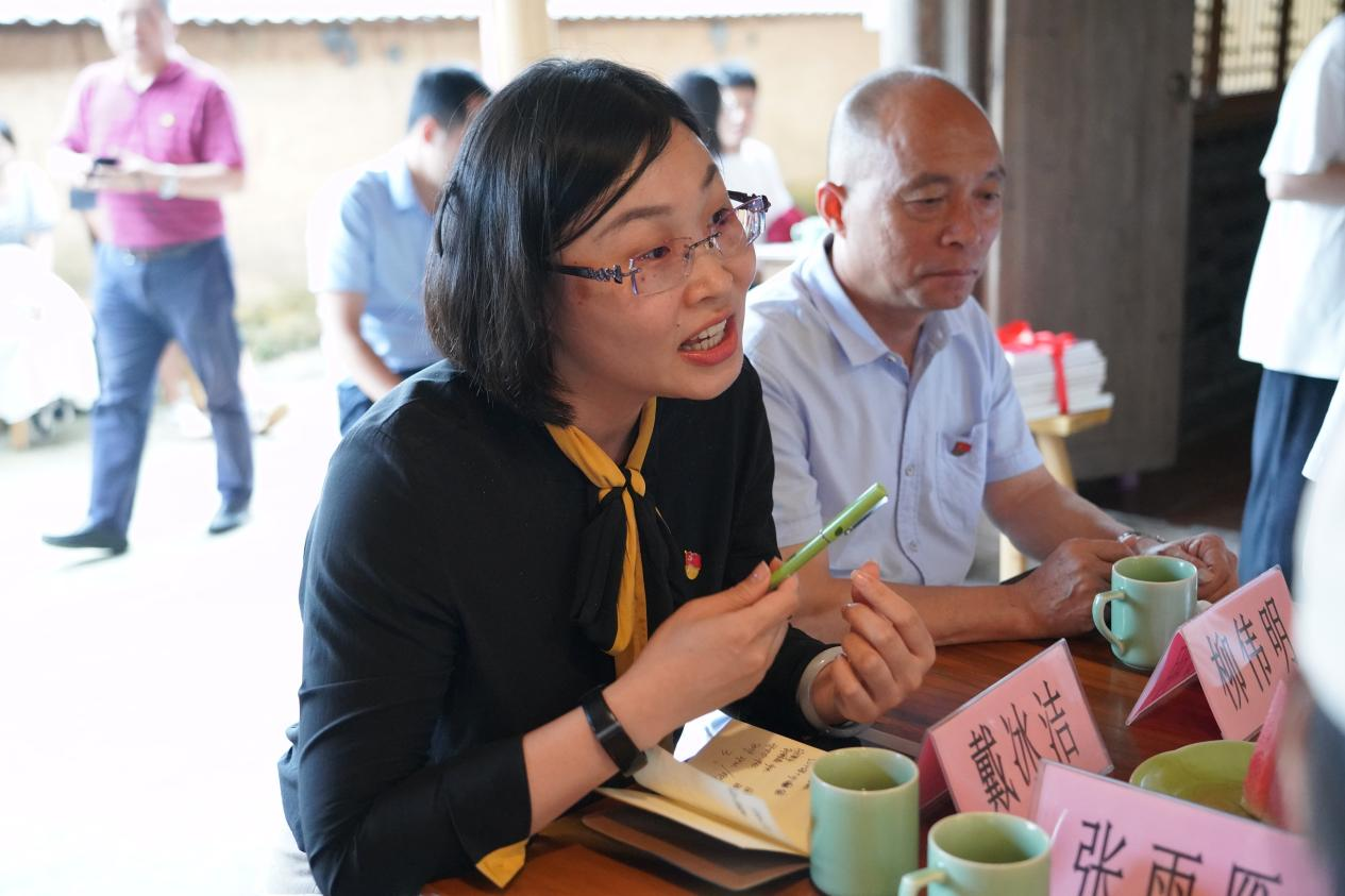 随后,教工党员们和安溪畲族乡党委书记邢决功、安溪畲族乡党委副书记、乡长钟鼎春、云和县县党史教学办综合协调组常务副组长叶跃平、云和县融媒体中心党组书记、主任朱登峰和一同参加了以“乡村振兴”为主题的座谈会,教师们纷纷围绕数字赋能、畲汉老百姓脱贫致富这一话题,建言献策。