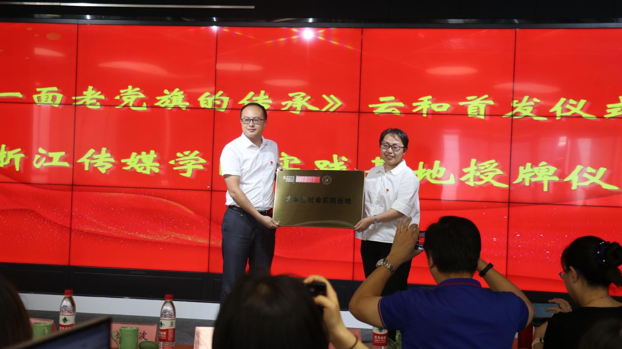 随后,我校新闻与传播学院党委书记崔波教授分别向县融媒体中心与安溪畲族乡授予“卓越新闻人才培养基地”、“大学生社会实践基地”牌匾,并作热情洋溢的讲话。崔波书记表示希望更多的同学们可以借助“蜂蜜融媒”人才培养基地,在云和这片热土上用心体会、敏锐观察,赓续浙西南的红色血脉,用传媒人的镜头和语言,挖掘丰富、生动、有力的云和故事。