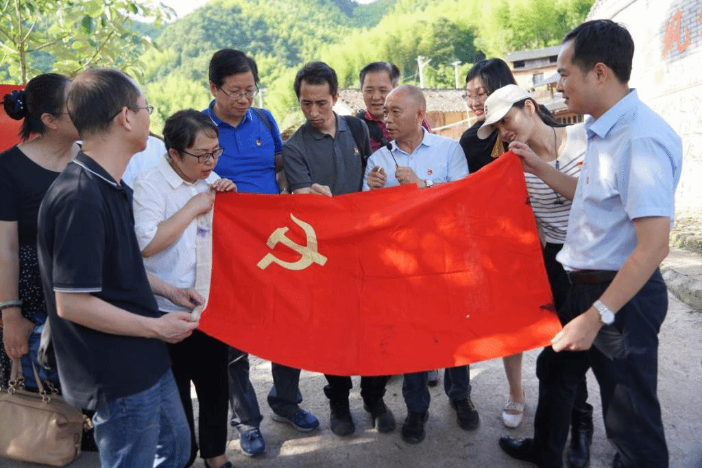 作为纪录片《一面老党旗》的主要参演者,安溪畲族乡下武村党支部副书记、村监会主任柳伟明向党员们生动讲述了老党旗背后的故事。在中华人民共和国建国前夕,黄家地村的村民们冒着生命危险制作了全村第一面党旗。“这面党旗的布和普通党旗不一样,是村民自己裁的,上面的党徽还是双面刺绣,这些墨渍和破洞都是当时村民们为庆祝共产党取得胜利,举旗挥舞时留下的”。 这面老党旗不仅见证了黄家地村优秀党员的热血和忠心,也见证了黄家地村脱贫攻坚的辉煌时刻。